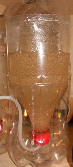 En af ulemperne ved denne lette konstruktion er det høje tyngdepunkt, når flasken er fyldt. Du kan øge stabiliteten ved at fylde bunden af holderen med akvariesilikone, sand eller gips som modvægt.